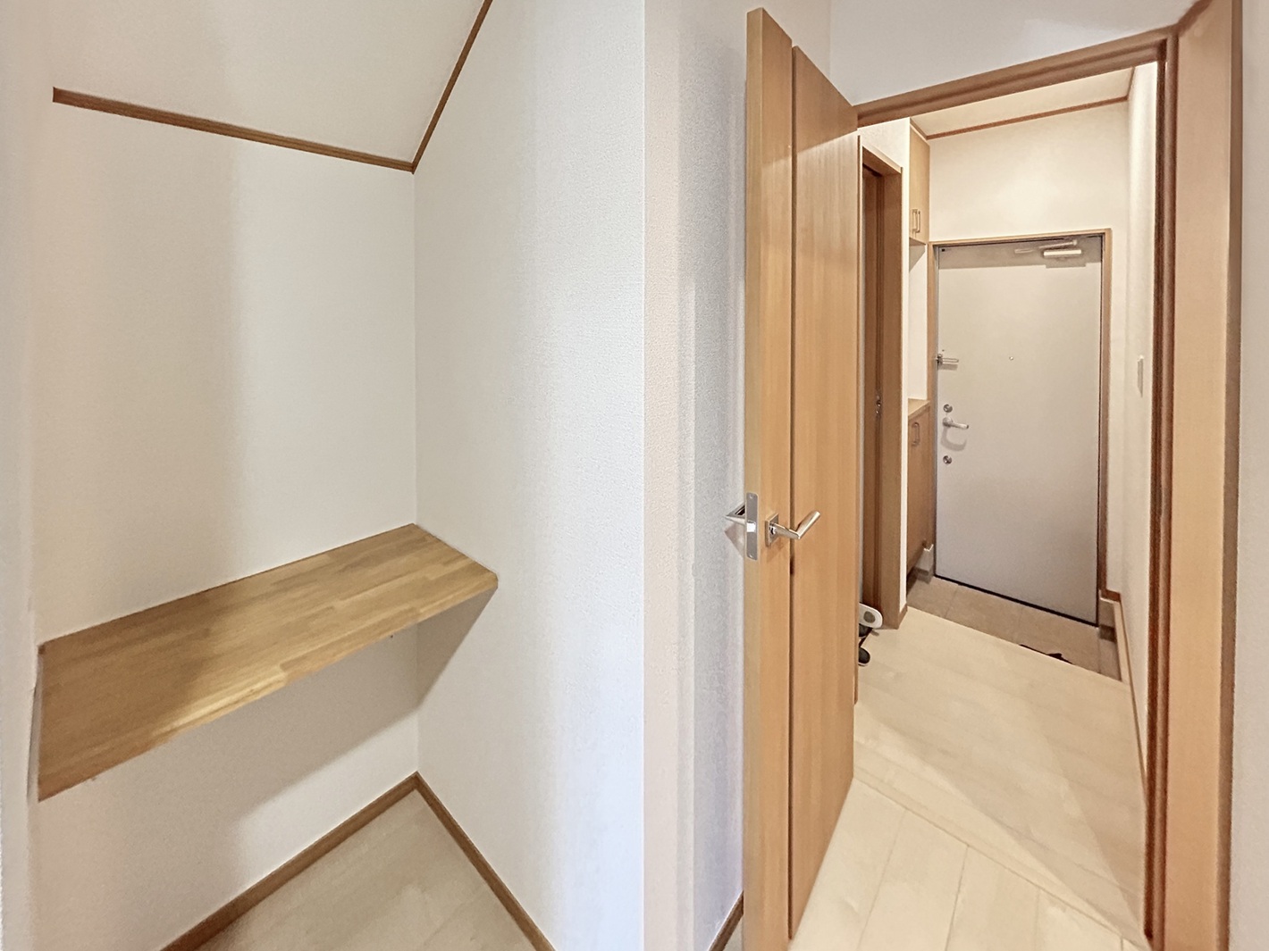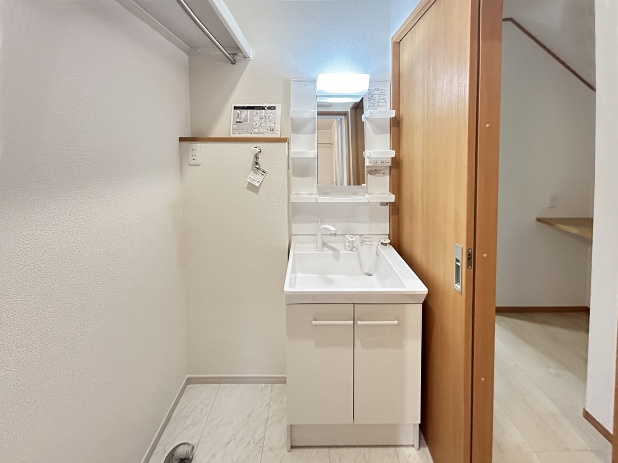 玄関ドアは2ロックタイプで、モニター付きインターフォン、洗面スペースが独立洗面台であり「一戸建てと変わらない広さ」になっています。