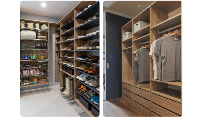 家事楽の間取りには収納の充実が必要不可欠です。用途ごとに収納を配置し、大容量の収納スペースも確保。片付けが自然と習慣になり、掃除の手間も軽減します。