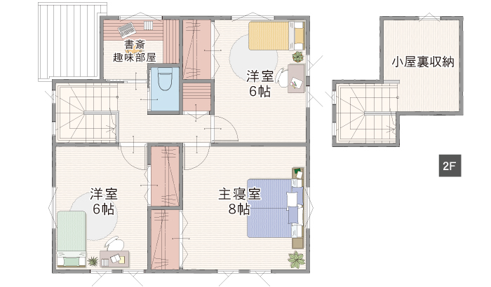 1階では家事の負担を減らす工夫を凝らし、2階を「仕事」や「趣味」など「自分時間」を大切にするためのプライベート空間として設計。各居室にも収納を完備し、お部屋を広々と使うことができます。 室内干しがメインとなる共働き世帯にとって、バルコニーの掃除やメンテナンスは新たな家事負担となりがちです。あえてバルコニーをなくすことで、その手間を省きました。