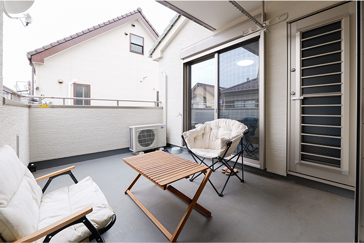 バルコニーではテーブルや椅子を用意してゆったりと寛げ、バーベキューなども楽しめます。