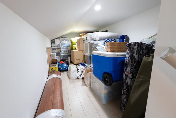 階段で行ける小屋裏収納はたくさん収納でき、取りに行くのも苦でない設計です。