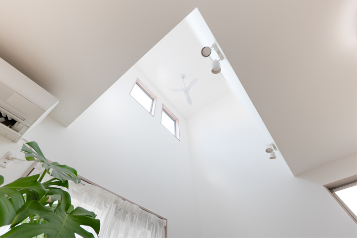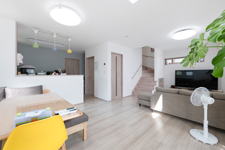 ゆとりのあるリビングにこだわりました。吹き抜けを完備し、自然光を積極的に取り入れ日中は電気をつけなくても明るいです。