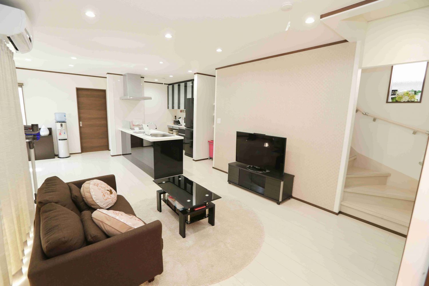 帰ったら絶対に顔を合わせたいとリビング階段を取り入れたF様邸。また、ウォークインクローゼットやシューズクロークなど収納スペースがたくさんあるため荷物をスッキリ隠せるので便利とのことです。担当が親身に話を聞いてくれたことで納得のいく家を建てることができました。