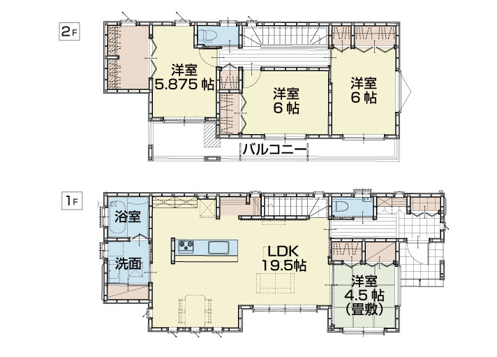 | 間取り | 家族が顔を合わせられるリビング階段を採用。ウォークインクローゼットやシューズクローク等、充実した収納スペース。 |