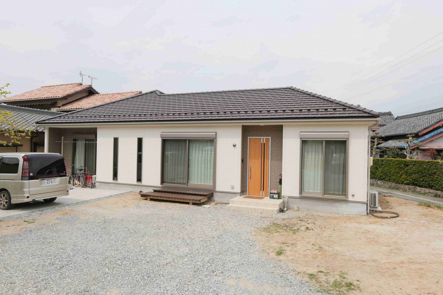 以前の家が古くなったので建て替えをしました。年も取ってくるので平屋は暮らしやすいと思います。他のハウスメーカーと比較して価格や設計の自由度でアイダ設計に決めました。設計プランは、リビングを通って子供部屋に行けるようになっていて、和室の間仕切りを開けるとリビングとの広い続き間ができます。キッチンはリビングを見渡せるようになって、気に入っています。子供も自分の部屋が持てたと喜んでいます。住み心地も良く、思い通りの家が出来たのでアイダ設計に決めて良かったです。