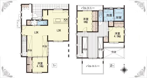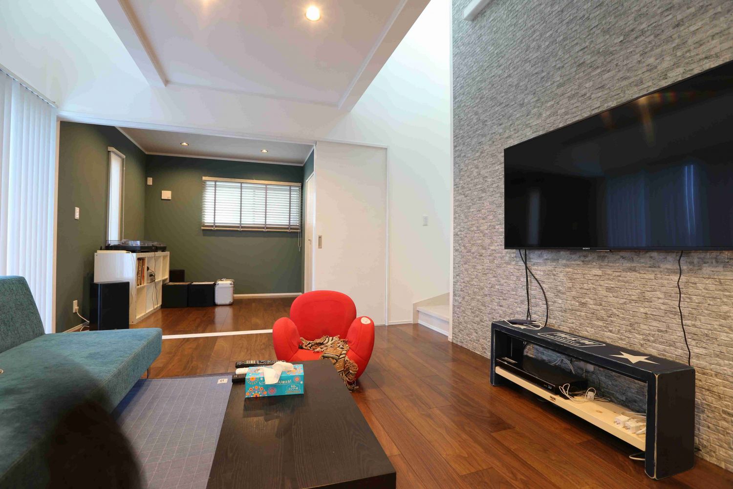年齢的なことから家の購入を検討しだしました。キッチン部分を独立させる様にリビングとの境に段差を設けて床材なども変えてあります。基本的には営業さんからの提案間取りが気に入り壁紙やウッド調のイメージを入れたくらいで大きな変更はありませんでした。リビングに2つの吹抜けやサイディングを使ったりと分譲住宅では見れないおしゃれな建物になっています。
