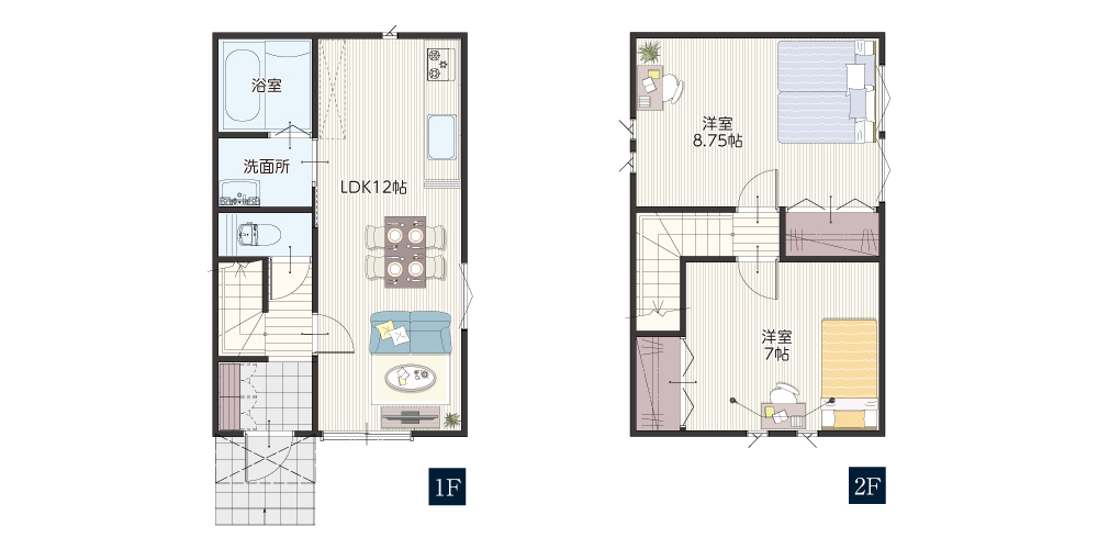 平屋16坪1LDK、2階建20坪2LDKの固定間取りにすることで、