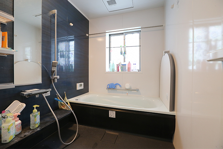 設計は子供の事を考えて、ドアのスライドで手を挟まないようゆっくり閉まるようになっています。また、子供がおもちゃなどを落としても傷がつかないよう大理石調の床を採用しました。自分の趣味を外でなく家で行えるビルトインバルコニーも気に入っています。