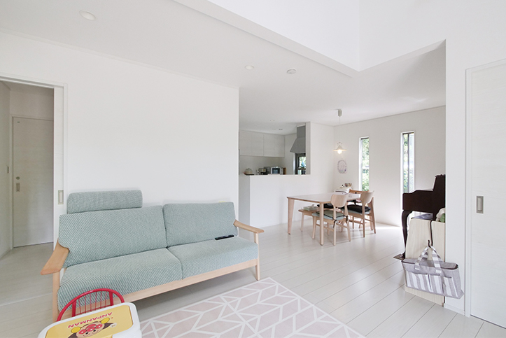 家内は白壁で統一したので家全体が明るく、日中でも明かりをつけずに過ごせています。
