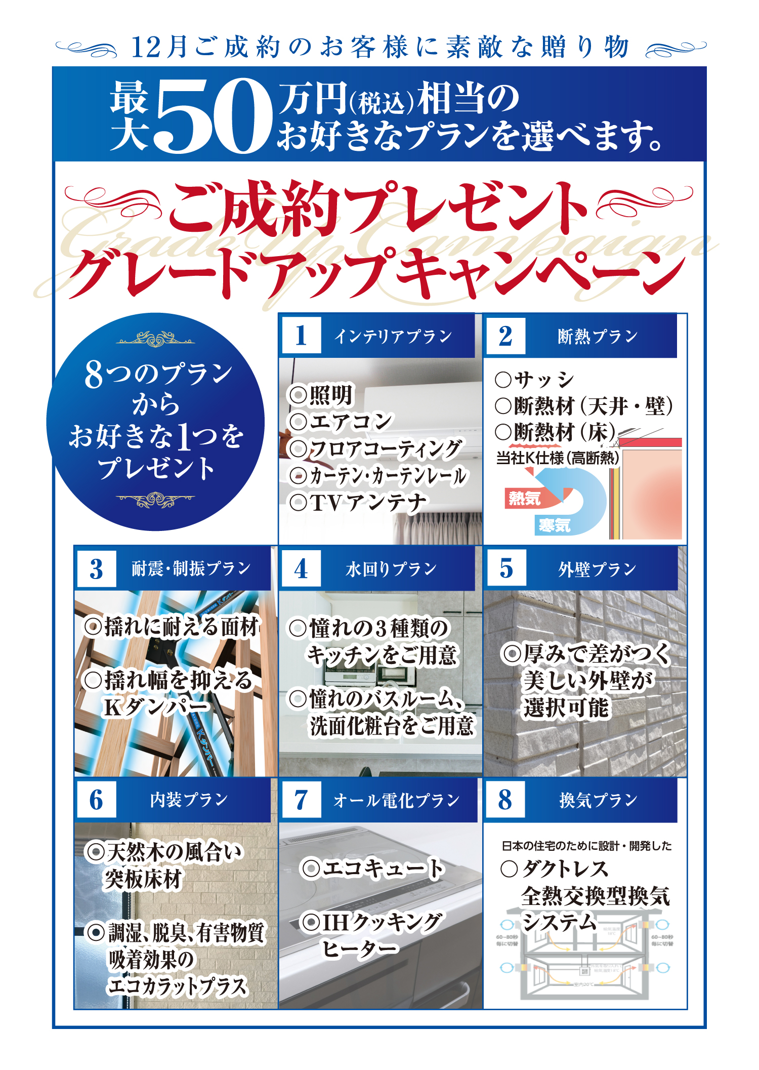 □ 2025年12月1日(月)~31日(水)までにご成約(建築請負契約の締結)して頂いたお客様が対象となります。