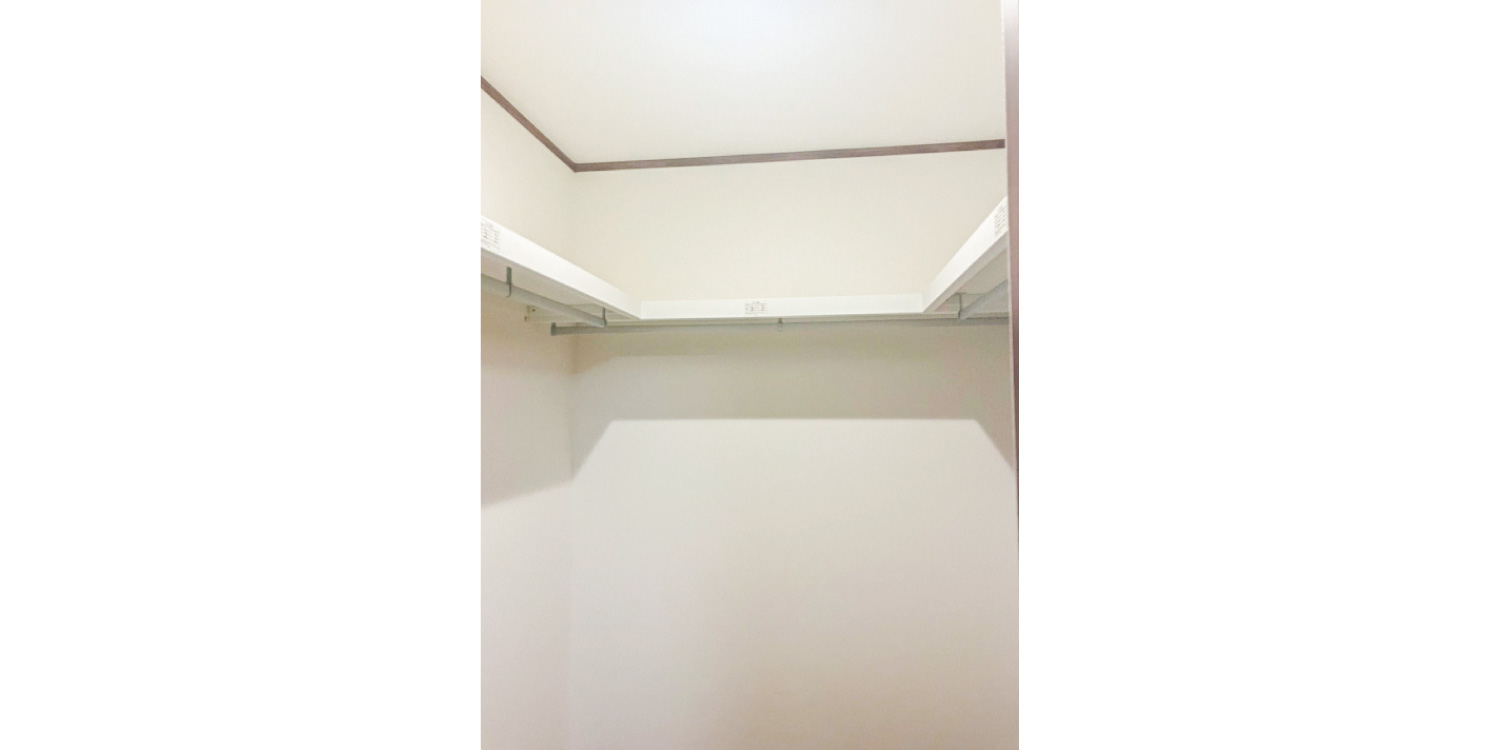 ②ウォークインクローゼットは、衣類はもちろんバッグやアクセサリー、スーツケースなどもすっきりと収納できます。季節物を分けて収納すれば、衣替えの必要もなくなります。