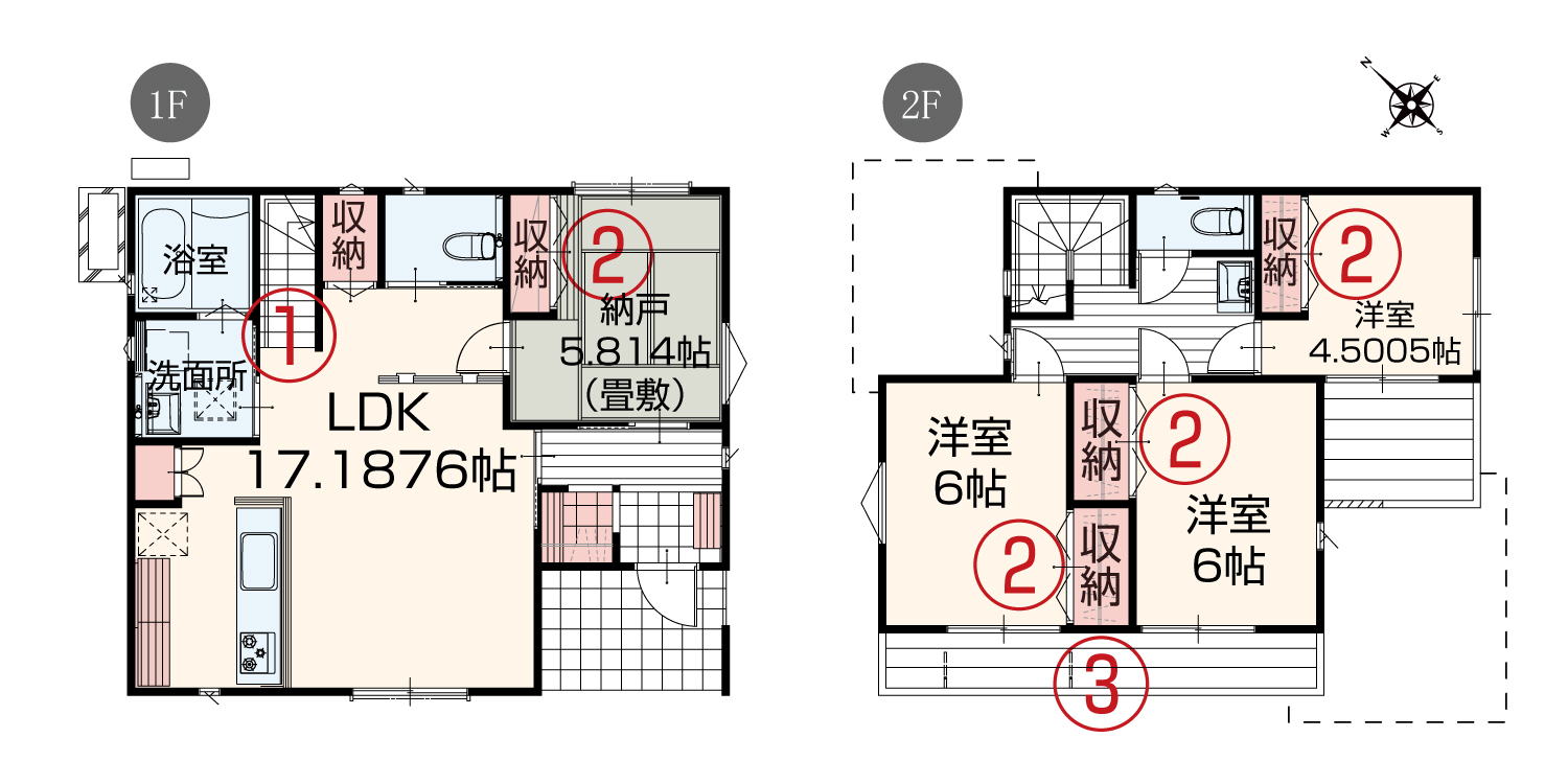 ②全居室に収納を採用! 物を片付けやすく部屋をきれいに保てます。