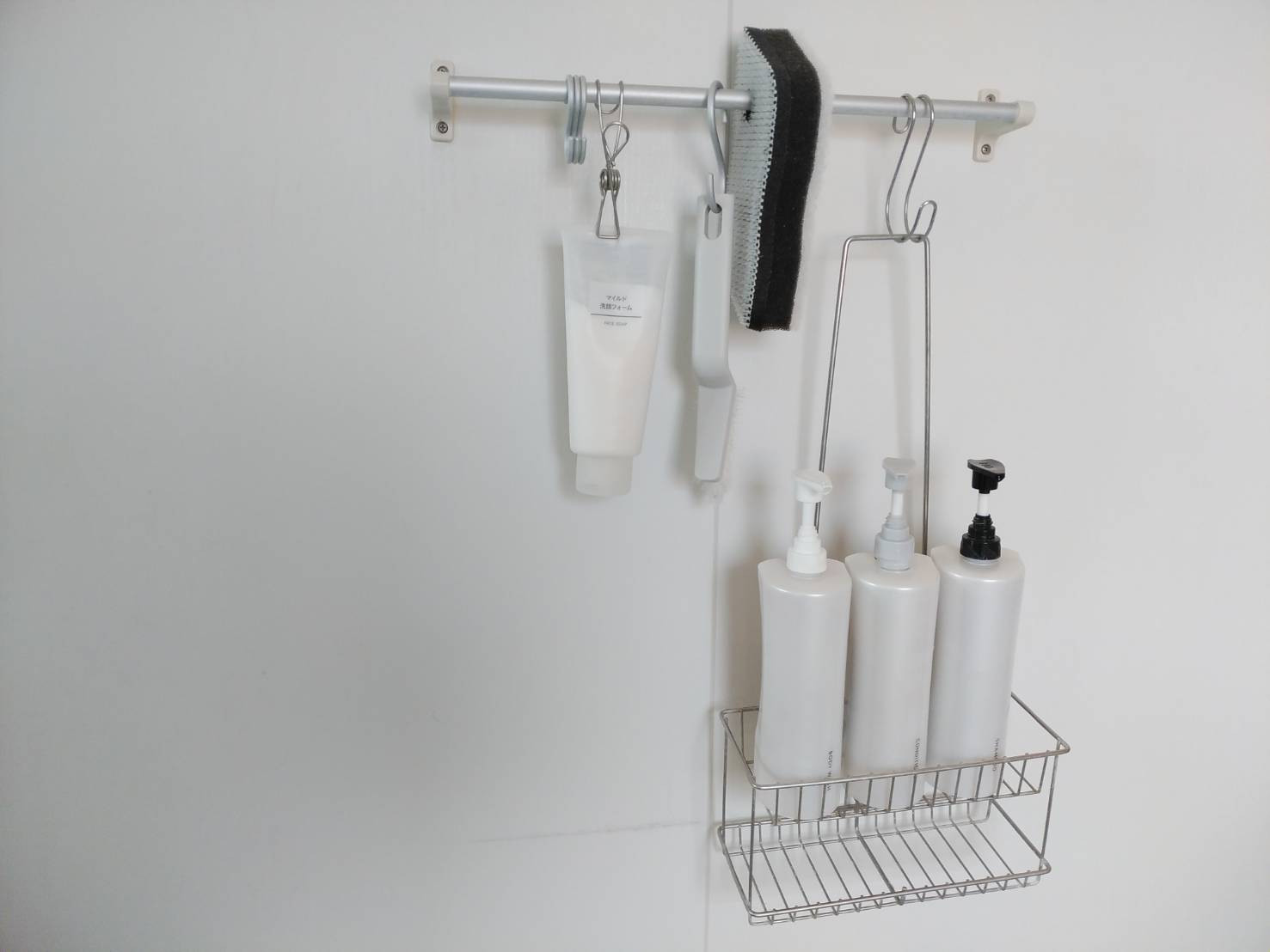 掃除の中でも特に億劫な水回りの掃除。水回りのモノは、できるだけ浮かす収納にすることで、ぬめりを防止しています。
